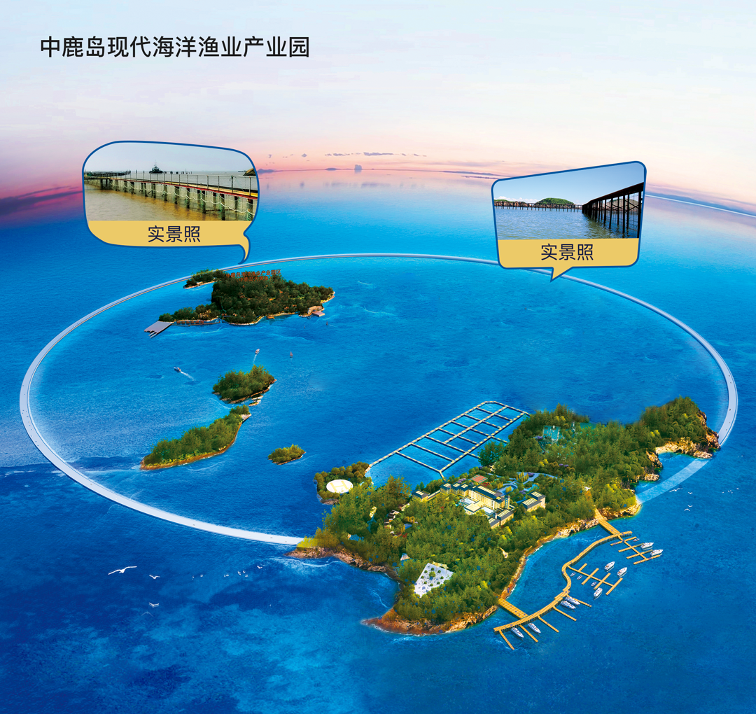 中鹿岛牧养基地总面积2800亩,一期工程约300亩已于2019年建设完毕。近年来,在政府支持下,基地积极建设中鹿岛现代海洋渔业产业园区,园区以中鹿岛海洋牧场为核心,下设生产中心,研发中心,深加工中心;在福建宁德设立育苗中心;在上海设立营销中心,形成全产业链体系,营造全生态养殖环境,实现养护并举的可持续发展模式。